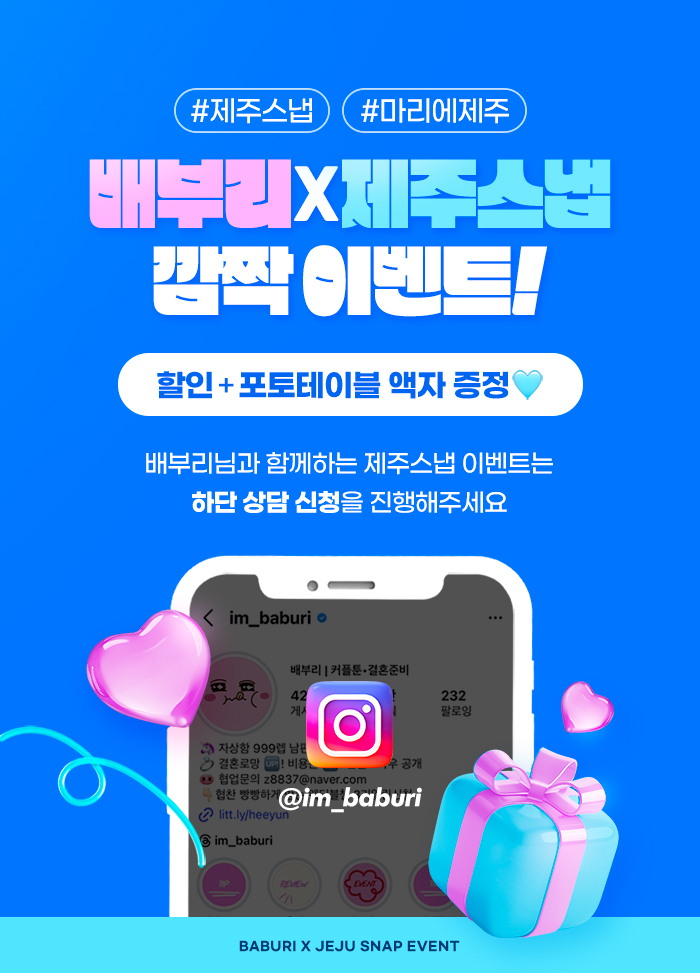 개인정보 수집 • 이용목적 : ㈜마리에인제주에서 이벤트 상담활용(전화, 문자)